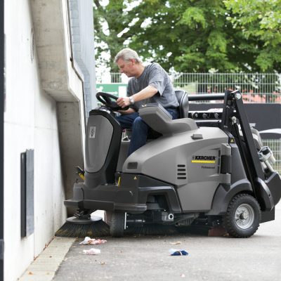 Dentro del catálogo de barredoras profesionales de Full Service, disponemos también de barredoras con conductor sentado como la KM 100/100 R Bp de Kärcher. Perfecta para el uso profesional en superficies interiores y exteriores de 6000 a 7800 m2/h. Entre sus características y ventajas destaca su sistema de protección contra impactos, su gran superficie de filtrado con limpieza automática o su sencillo sistema de mantenimiento sin necesidad de utilizar herramientas.